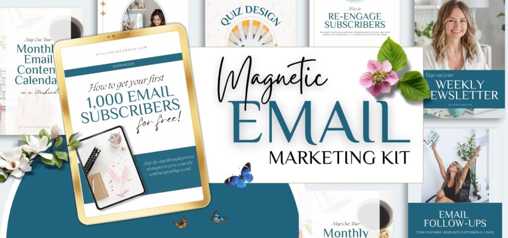 The Magnetic Email Subscribers Kit is your go-to resource for growing your list, nurturing your audience, and turning subscribers into loyal clients—all in one easy-to-use package.