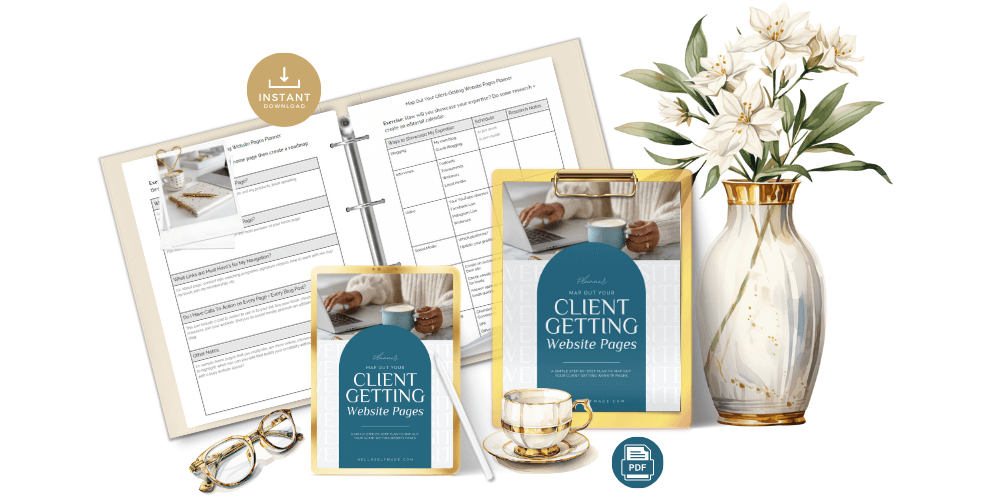 With the Map Out Your Client-Getting Website Pages Planner, you’ll map out every critical detail (SEO, user flow, and calls-to-action) to create a website that works while you sleep – no tech wizardry required!